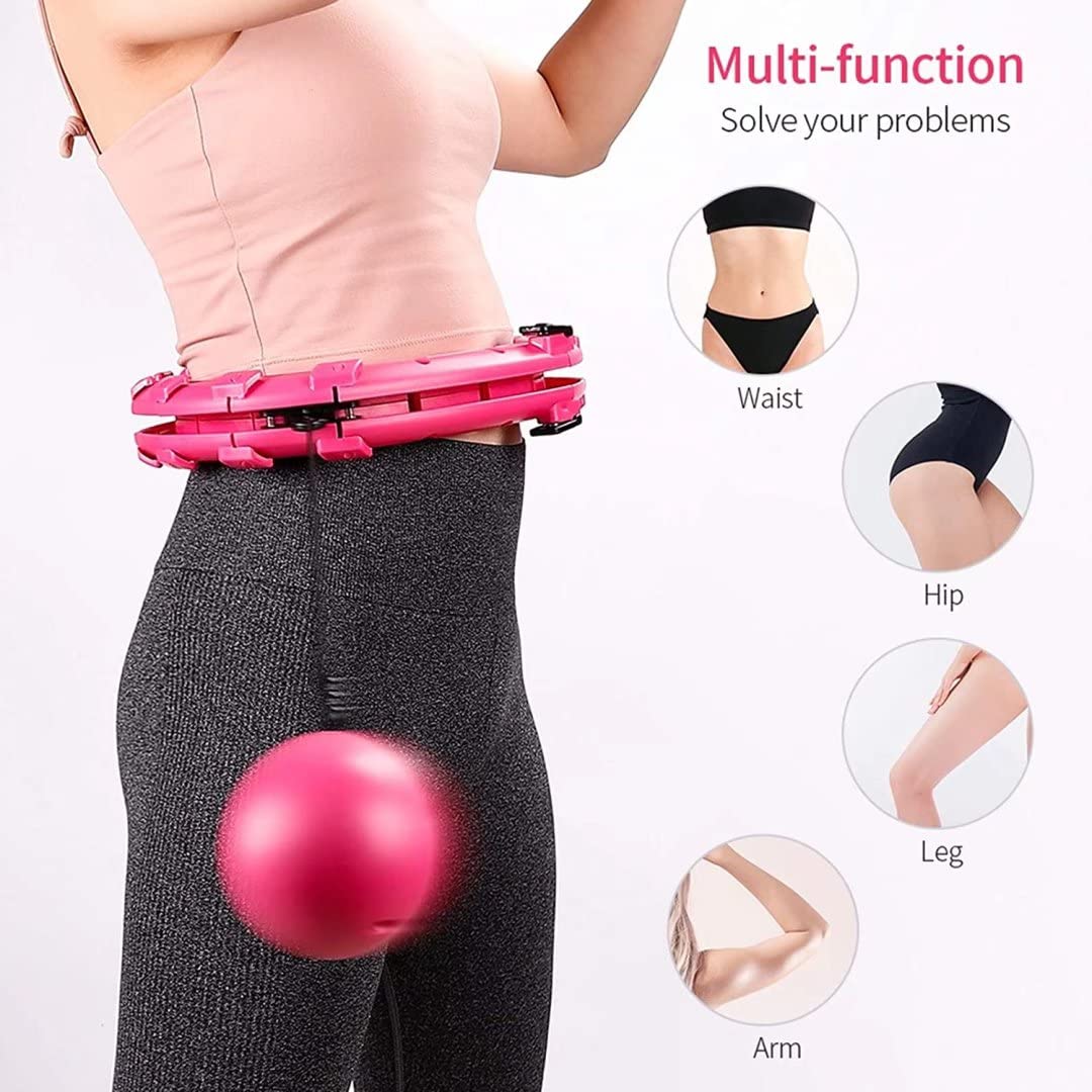Connected by 24 or 28 detachable sections, our Infinity Fitness Hoop is adjustable to all waist sizes from 20 to 52 inches. That means that you can use it forever, regardless of your waist size changes. Every section has an ergonomic bump that provides a pleasant massage to your belly while using it.
